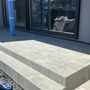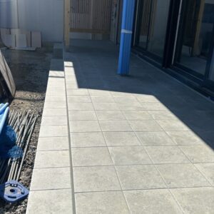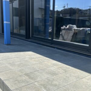 こちらの新築のお家では、玄関ポーチとつながったタイルデッキを施工してきました。
