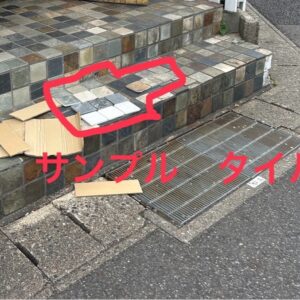 タイルが何枚か剝がれてしまい危ないため、新しくしてほしいとの事でした。既存タイルを全てはがしたあと、新しいタイルを貼ってきました。