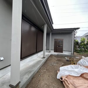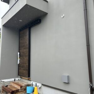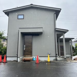 屋内の様子は改めてUPしようかと思いますが、今回は外壁の写真です。使用した塗り材は、アイカ工業のジョリパット。JP100 ゆず肌吹付け仕上げです。