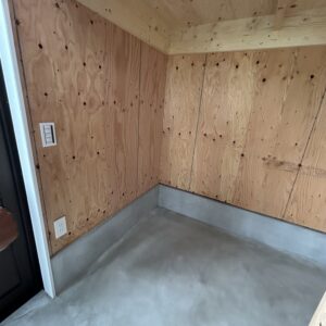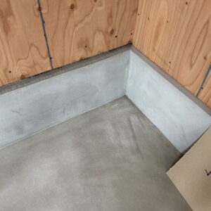 約10㎡の倉庫の床全面をモルタルで仕上げました。広い倉庫にモルタルの床、使いやすそうです。今回は倉庫の床でしたが、無機質でシンプルな雰囲気が好まれて玄関ポーチに採用されることもあります。