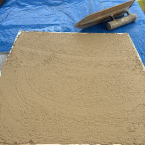 漆喰(しっくい)に珪砂(けいしゃ)を混ぜると、通常よりもざらつきがでて塗ったときに凹凸ができ自然や手仕事の印象が強く出ます。
