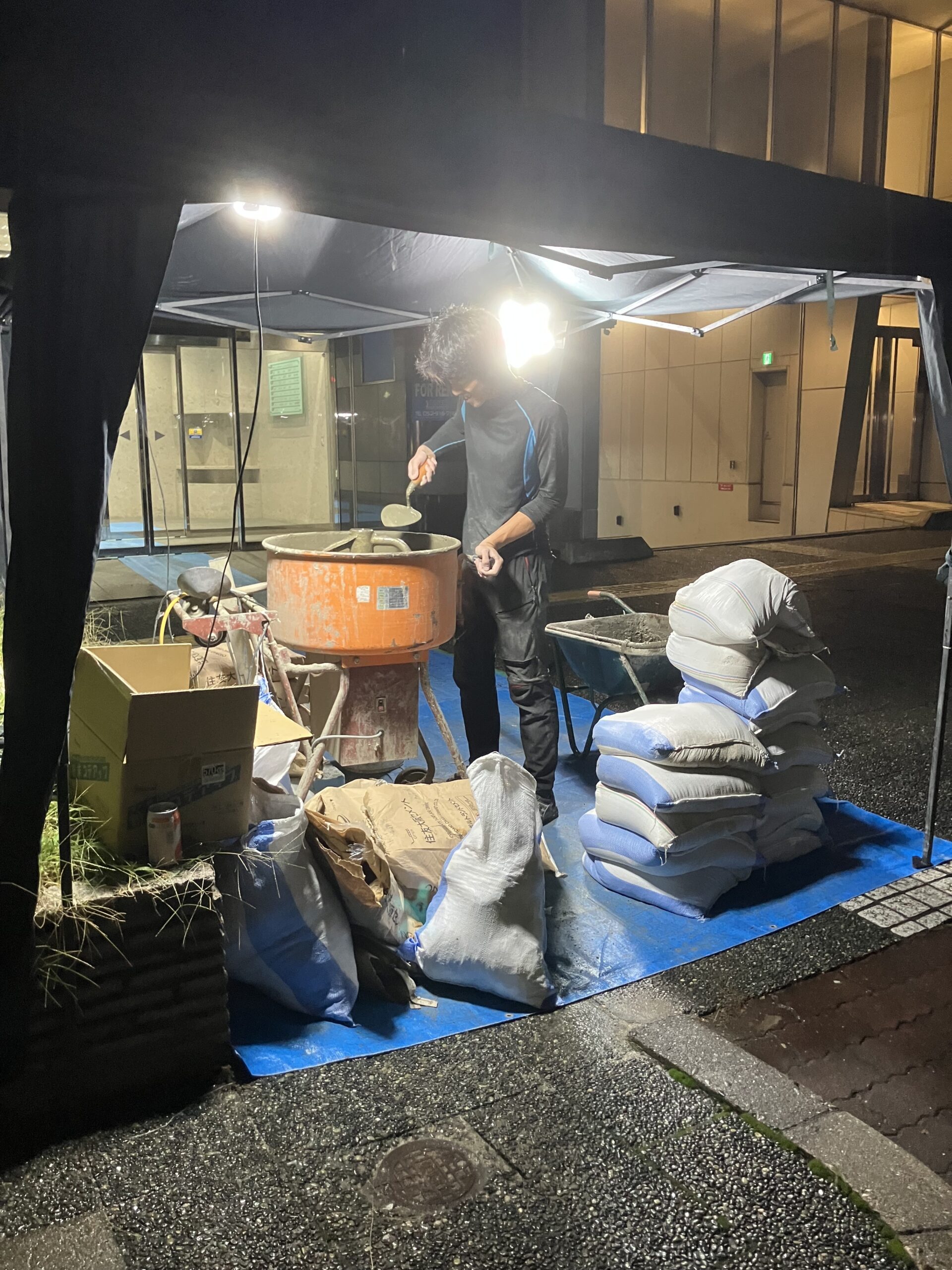テント張って夜遅くの作業となりました。