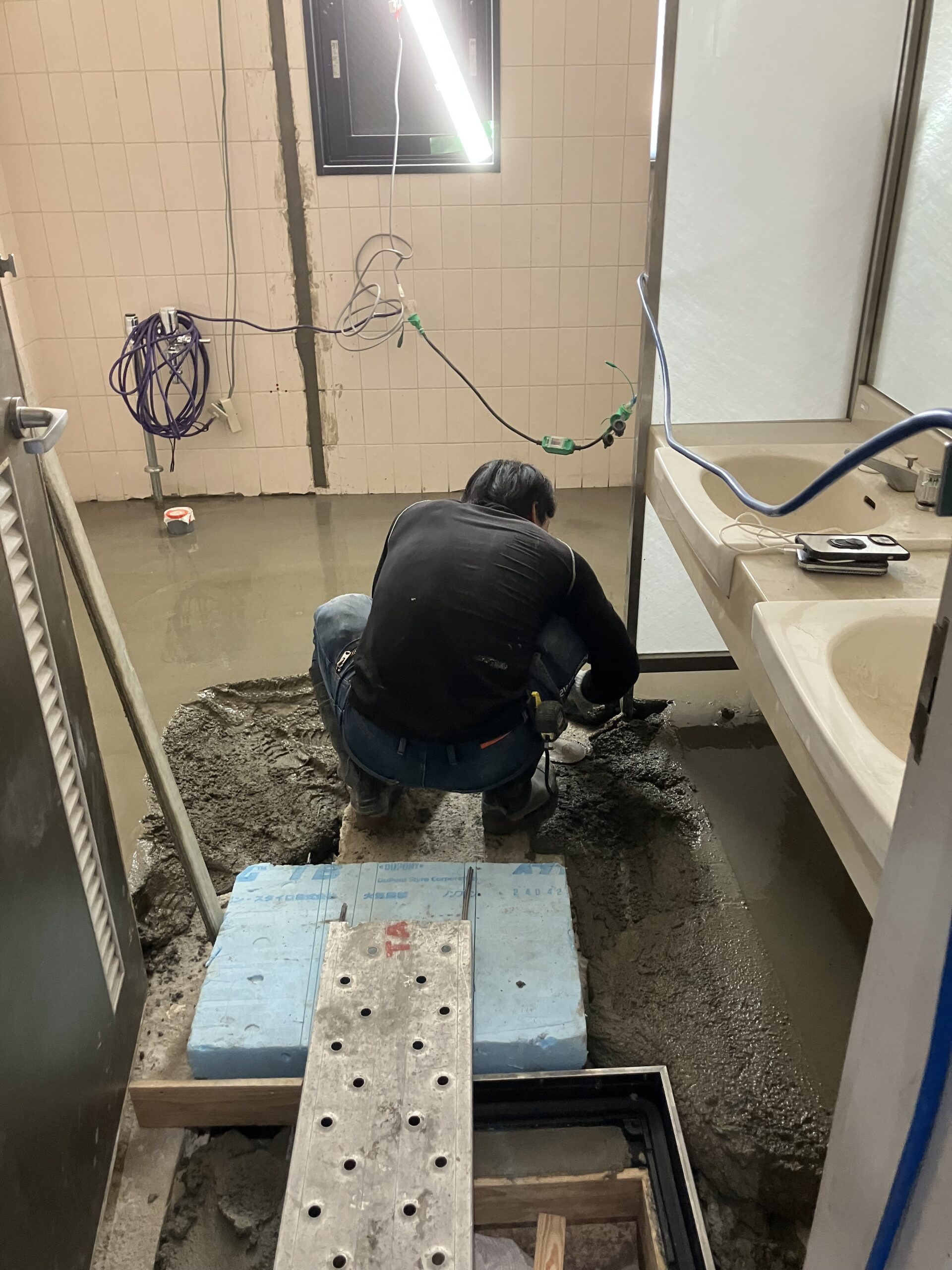 従業員の皆さんお疲れ様です。床モルタル仕上げ