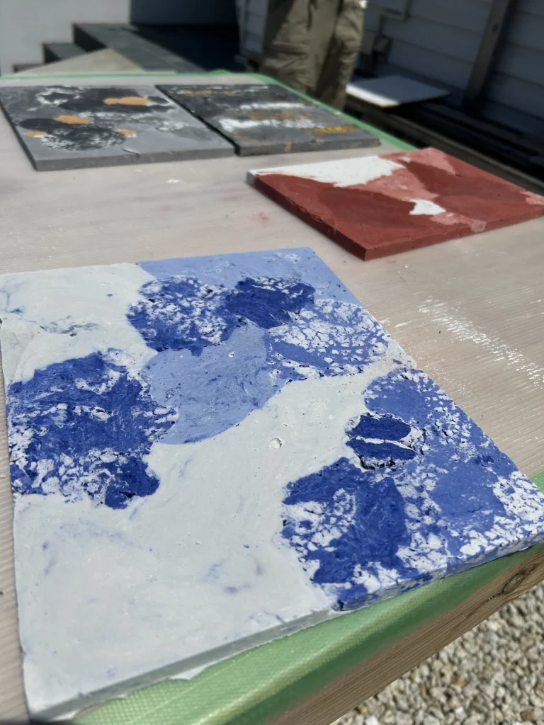 石膏を主材として大理石の質感を再現する「シュトゥックマルモア」は、自由な色彩設計が可能な伝統的工法です。複数の色を練り合わせることで、天然石のような複雑なマーブル模様を自在に作り出すことができます。非常に手間と時間を要する工程ですが、丁寧に塗り重ねて研磨することで、既存の建材では表現できない独創的な意匠を実現します。モールテックスやビールストーン同様、高いデザイン性と職人技が融合した仕上げです。