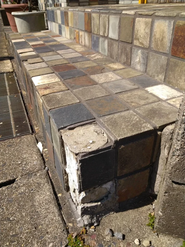 玄関ポーチにおけるタイルの剥がれやガタつきを補修し、併せて手すりを設置した施工事例です。既存のタイルが廃番などで入手困難な場合でも、質感や色の近い代替タイルを選定し、バランス良く配置することで違和感なく仕上げることが可能です。タイルの張り替えと同時に手すりの基礎固定や取り付けを行うことで、玄関まわりの安全性と美観を効率的に向上させることができます。